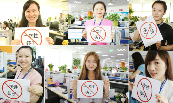 为使“低碳环保”理念更加地深入人心,“告别一次性筷子 还地球一片森林”活动现场通过播放一次性筷子的危害、派发便携式餐具等方式,鼓励大家以实际行动拒绝使用一次性筷子。活动也得到大家的积极参与和支持,大家纷纷在公益海报或横幅上签下自己的环保承诺。